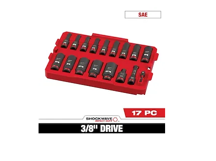 Milwaukee SHOCKWAVE Impact Duty Socket 3/8 Dr 17pc SAE Tray Set