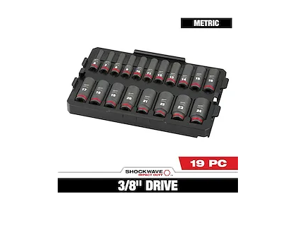 Our SHOCKWAVE Impact Duty™ Socket Set features the boldest, longest-lasting markings and extreme impact durability in high torque applications. The stamped and ink-filled size marking enables you to select the right socket every time throughout the life of the socket. Engineered with high-strength forged steel for optimized performance in heavy-duty applications. Sets feature removable trays that are compatible with MILWAUKEE® PACKOUT(TM) Organizers and fit in tool chest drawers. The non-slip hex geometry prevents fastener rounding. The Milwaukee dual-hole design and ring groove allow for easy socket attachment and removal. The cases are impact-resistant and nest together for easy stacking and storage. All Milwaukee SHOCKWAVE Impact Duty ™ Sockets and Extensions are backed by Milwaukee’s Lifetime Guarantee and meet ASME industry standards.